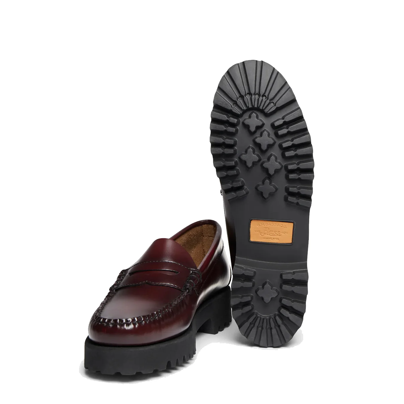 Statement loafers, the Weejuns 90s are a timeless classic with a youthful touch. Featuring black polished leather uppers in a slip on design, hand stitched seams in tonal waxy thread, leather heel sock with gold foil branding, finished with a chunky yet super lightweight EVA outsole.